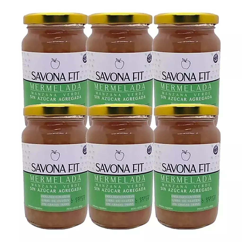 • Mermelada Savona Fit Manzana Verde Sin Azúcar 6 Frascos X400