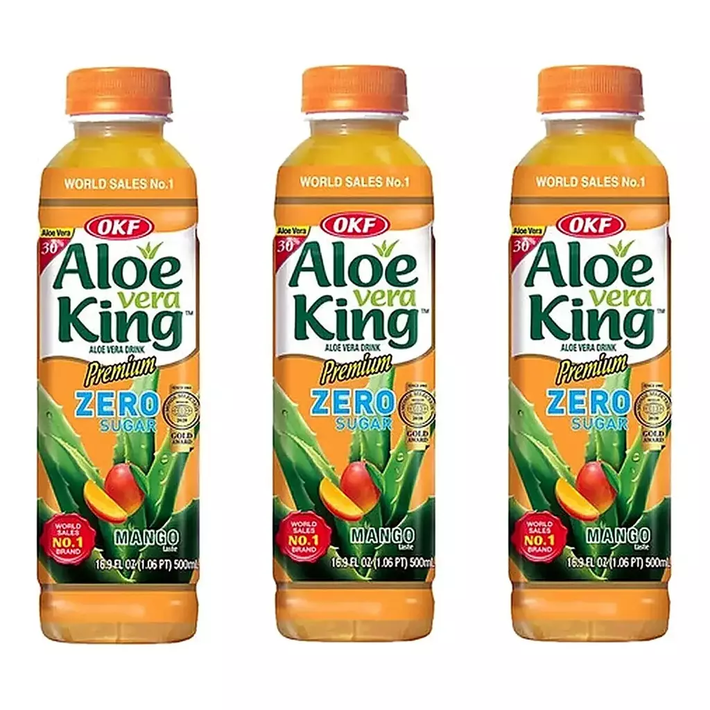 • La marca Aloe Vera King Okf se ha destacado por ofrecer productos elaborados con ingredientes naturales de alta calidad. Esta bebida a base de aloe vera y mango sin azúcar añadido es resultado de la combinación perfecta entre sabor y beneficios para tu bienestar. Disfruta de la tradición y la innovación en cada sorbo con el Pack 3 Bebida Aloe Vera King Okf Mango Sin Azúcar Zero 500ml.
